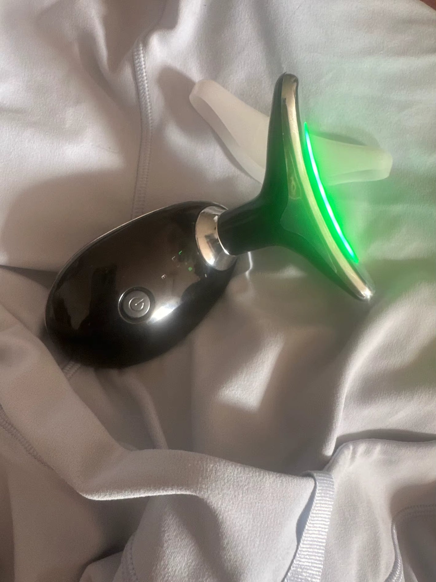 Massager combines 7-color LED light therapy, gentle vibration massage, and soothing heat to help improve skin elasticity, boost collagen production, and relieve muscle tension in the neck and face.